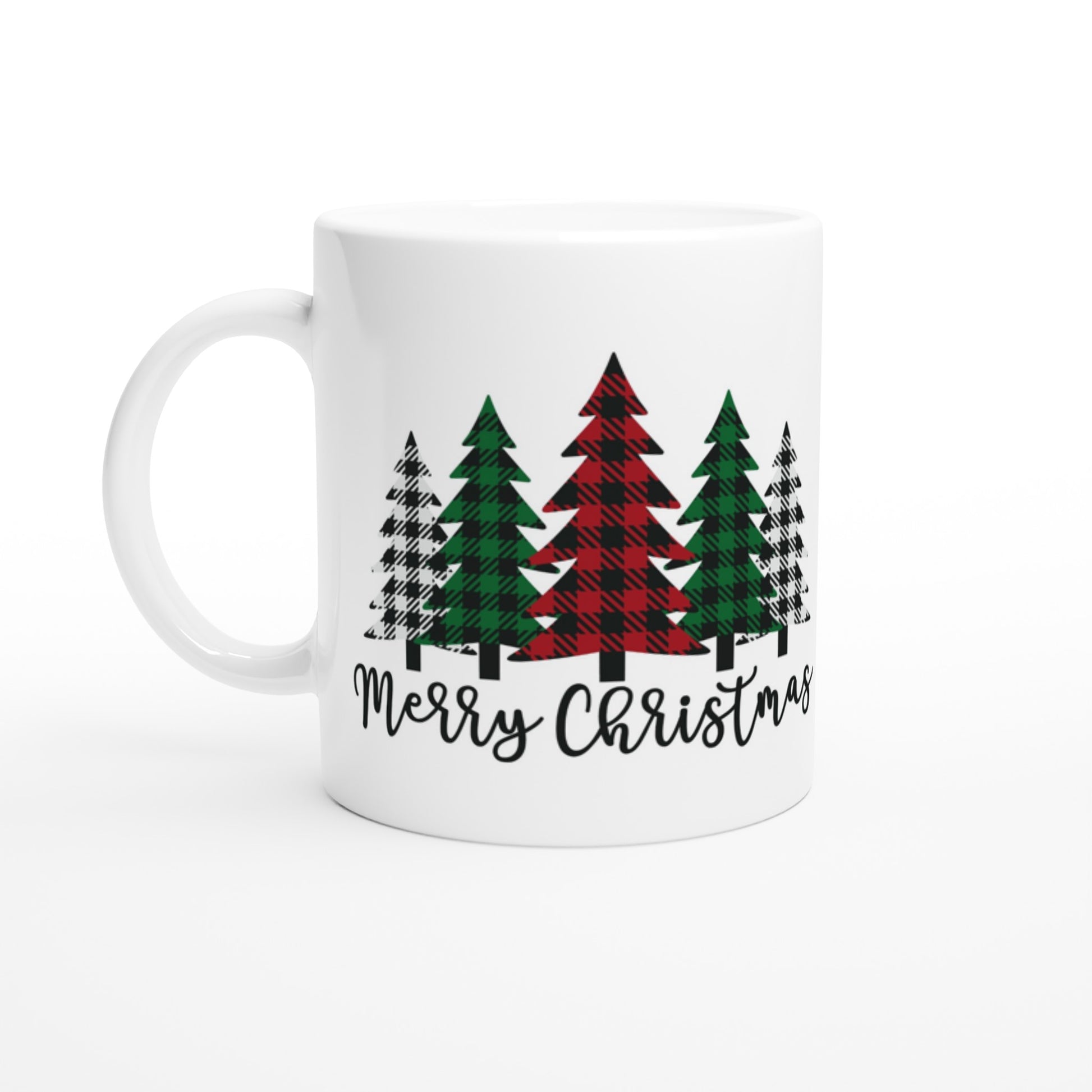 Merry Christmas (plaid tree)- White 11oz Ceramic Mug