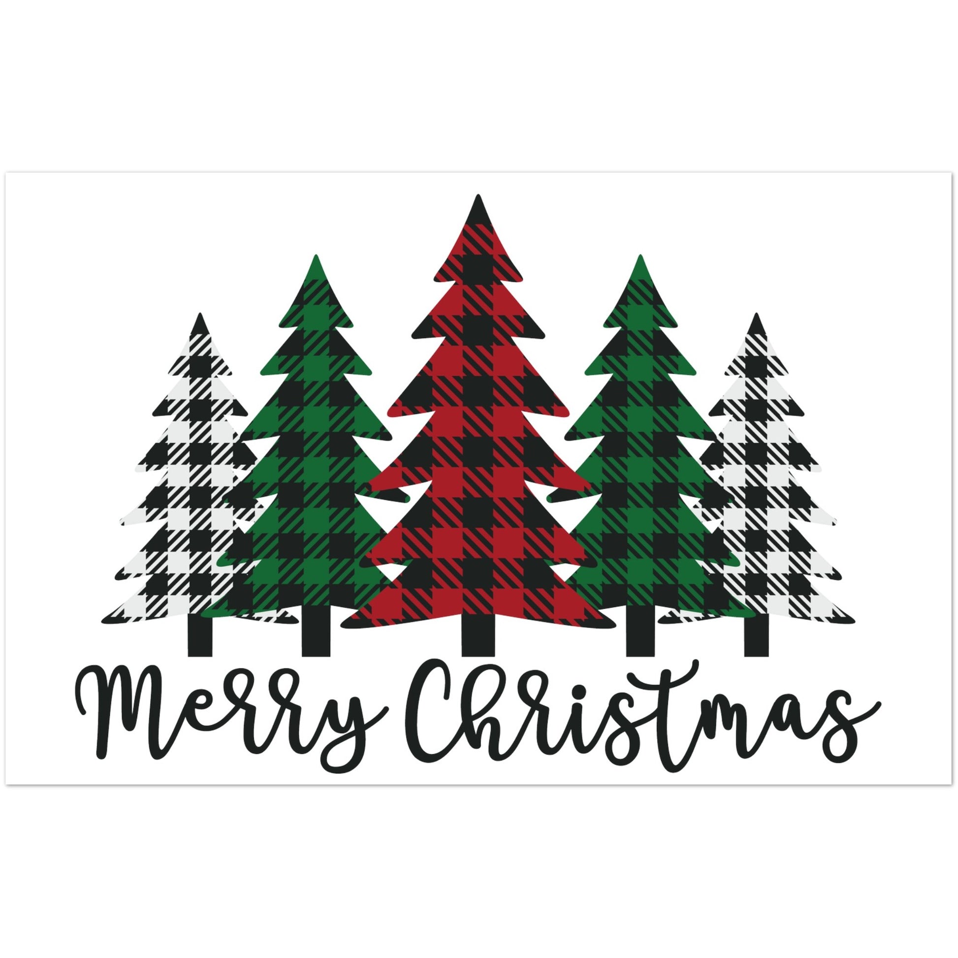 Merry Christmas (plaid trees) Pack of 10 Blank Greeting Cards (standard envelopes) (US & CA)