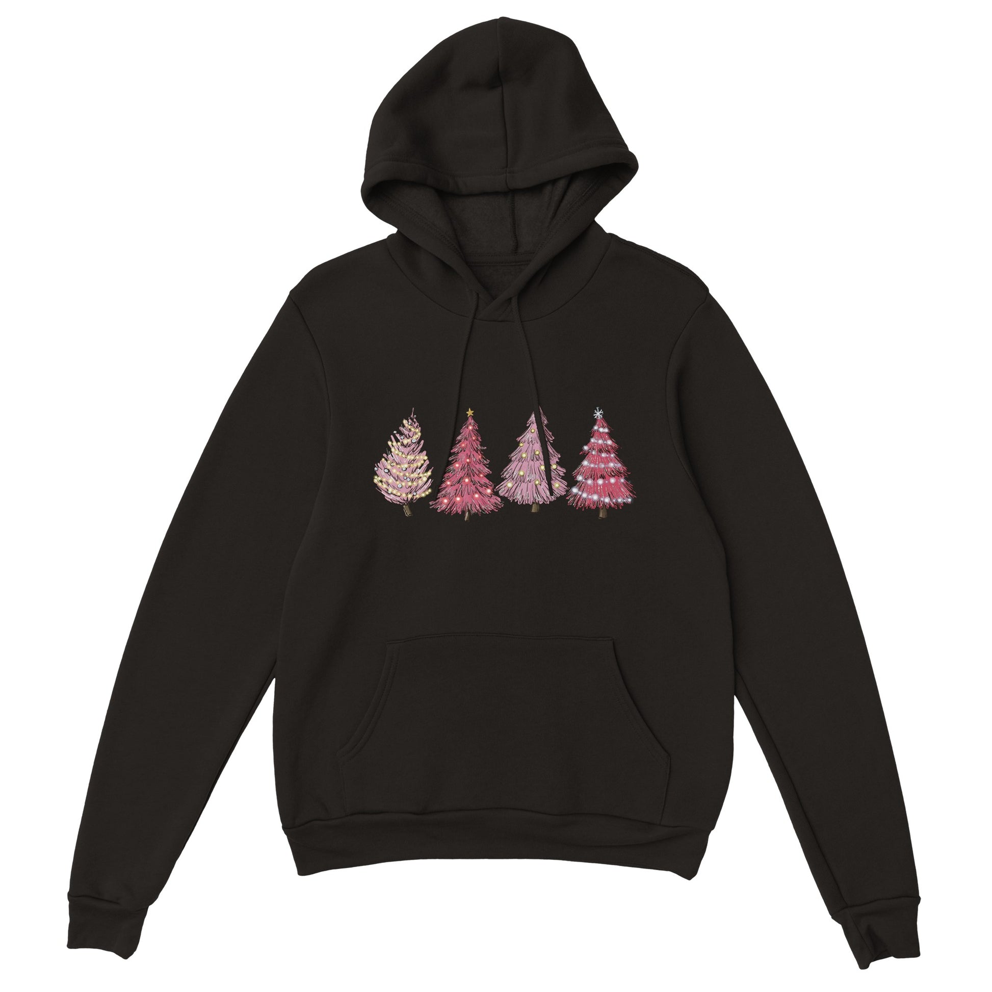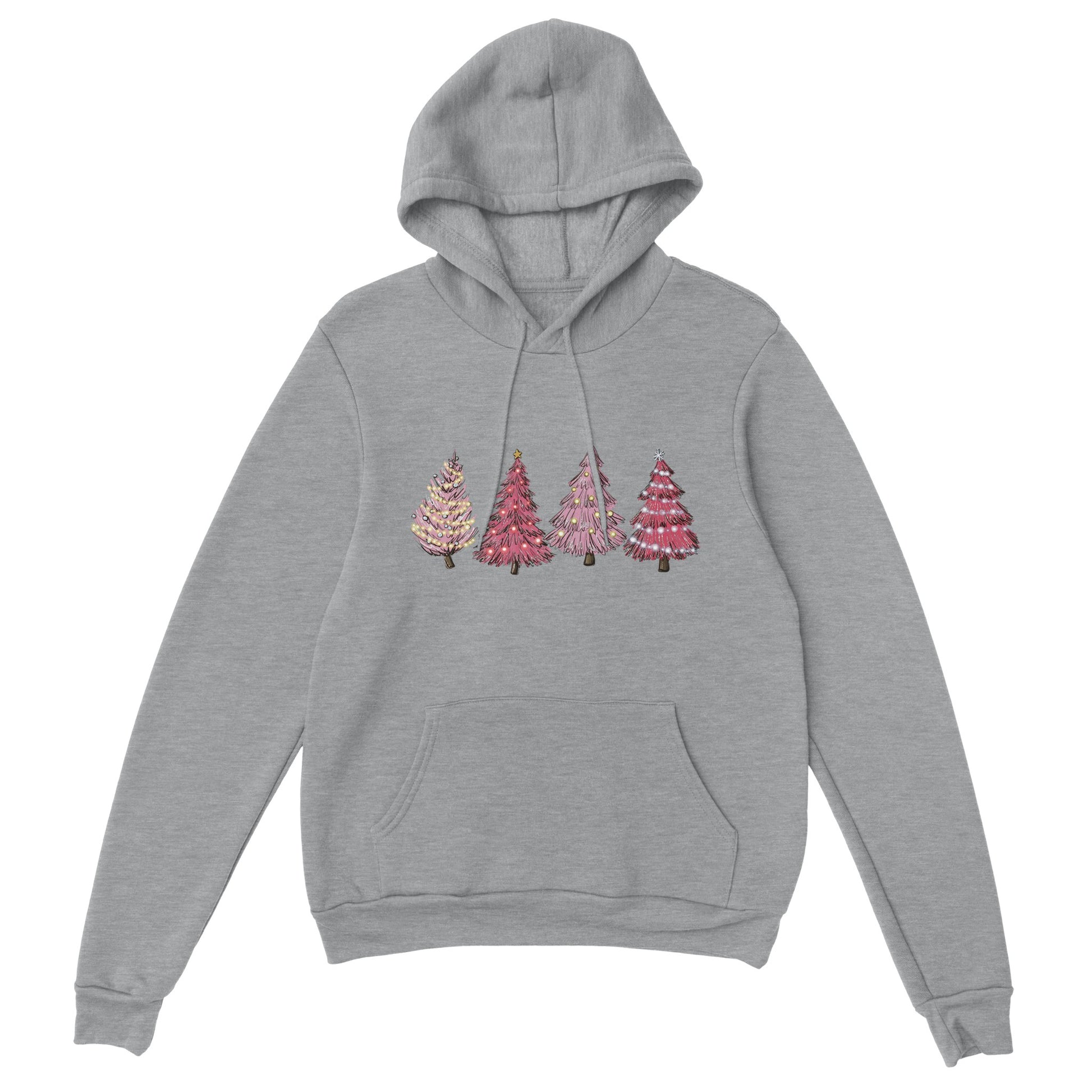 Pink Christmas Tree - A classic hoodie with a large front pouch pocket and drawstrings in matching color.